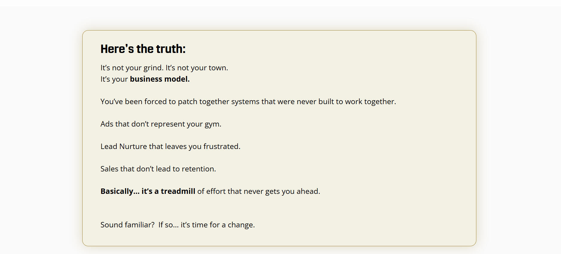At Gym Launch, we find the one thing holding your gym back — and solve THAT.So what’s holding your gym back right now?-Not enough leads?